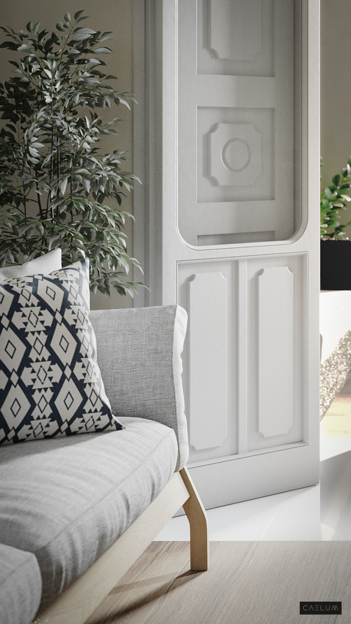 infografías 3D de los interiores y de edificio rehabilitado en el centro histórico de la ciudad.
